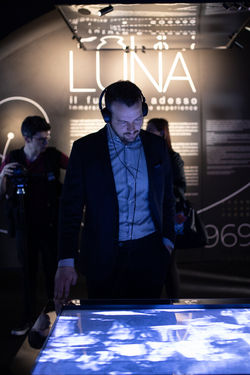 Grazie all’utilizzo delle tecnologie più all’avanguardia nel campo della interazione, fra cui il sistema Lighting Touch 7.0, la mostra ripercorre le fasi dell’allunaggio attraverso videoproiezioni a 360 gradi che si evolvono rispondendo al tocco del pubblico, catapultandolo nel cuore di un’esperienza che ha fatto epoca. Il percorso si conclude con una spettacolare Wunderkammer nella quale passato e presente si mescolano, aprendo squarci su un incerto futuro dominato da drammi ambientali quali il riscaldamento globale.
